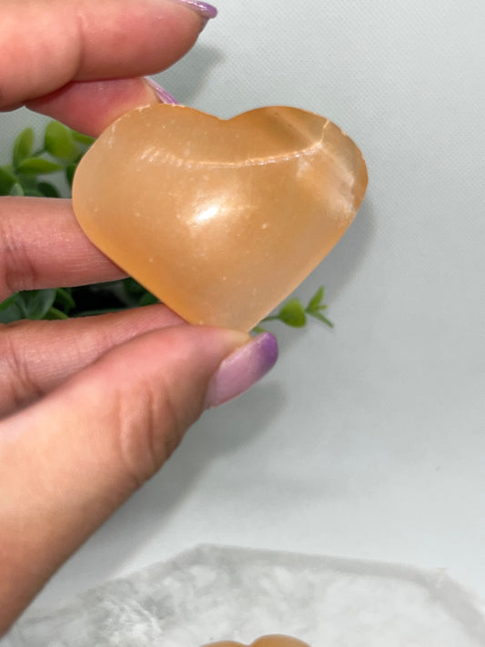 Peach Selenite Heart